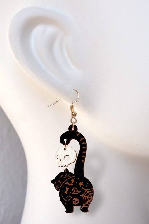 Cat and skull earring laser cut and engrave file, Earring DIGITAL DOWNLOAD FILE, earring for Halloween