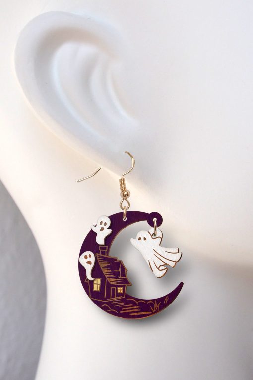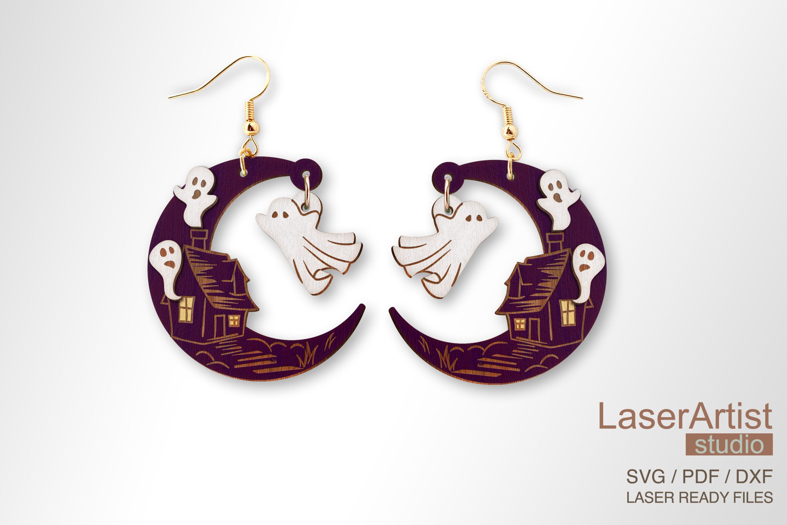Haunted house crescent earring laser cut file, earring DIGITAL DOWNLOAD FILE